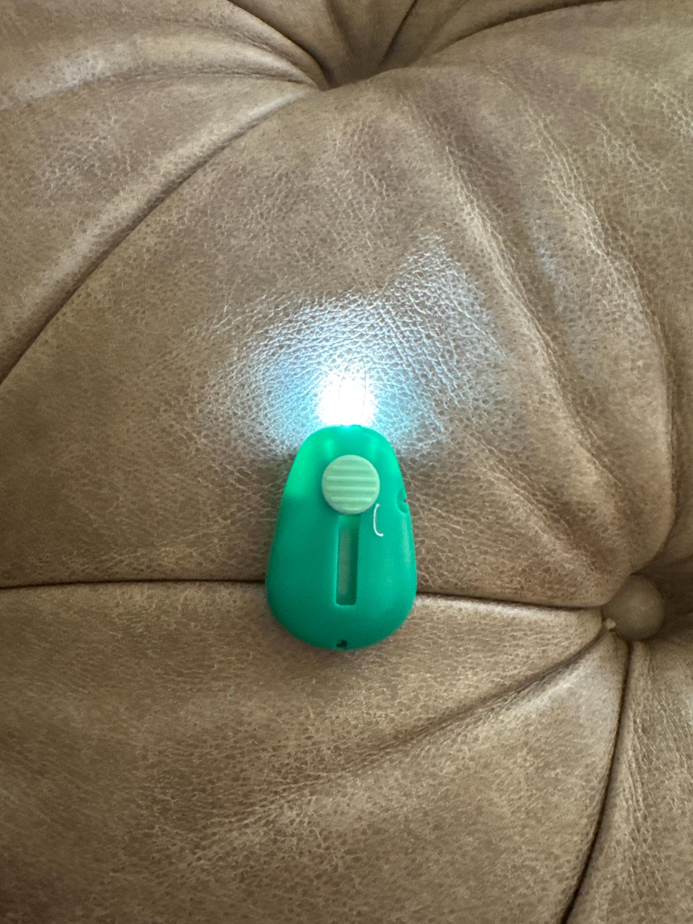 Thread needles quickly and easily with the Dritz LED Needle Threader and Cutter. Aiding the eyes, the new LED needle threader features a bright LED light that activates when threader slides out of the case. This handy tool is retractable to keep threader wire protected when not in use. Other features include finger grips to provide stability and comfort, a built-in thread cutter, and a lanyard hole for inserting cord or string to keep it close by. Retractable threader protects the wire when not in use. Bright LED light activates when threader is exposed. Finger grips provide stability and comfort. Built-in thread cutter cuts thread to desired length. any hole at base of threader for inserting cord or string.